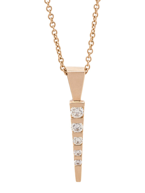 Containing five round brilliant cut diamonds weighing approximately 0.35 carat total, suspended from a cable link chain. 15 3/4 inches long.