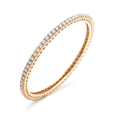 Containing 67 round brilliant cut diamonds weighing approximately 6.00 carats total. Mounted in yellow gold. 7 inches inner circumference.