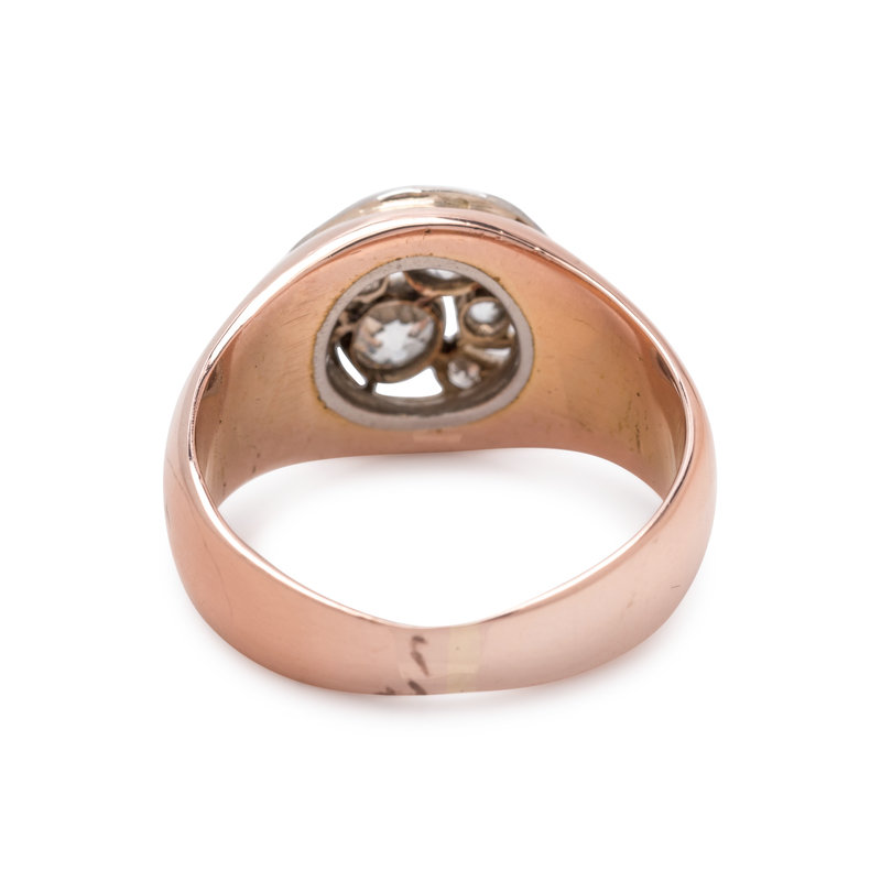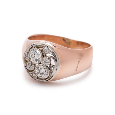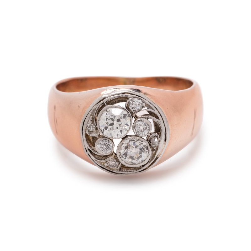 Containing eight old European and round brilliant cut diamonds weighing approximately 0.70 carat total. Ring size 8 3/4.