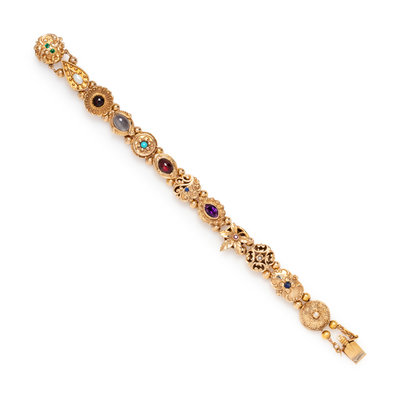 HONORA, YELLOW GOLD AND MULTIGEM SLIDE BRACELET