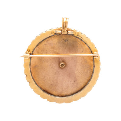 DIAMOND, CULTURED PEARL AND ENAMEL PENDANT/BROOCH
