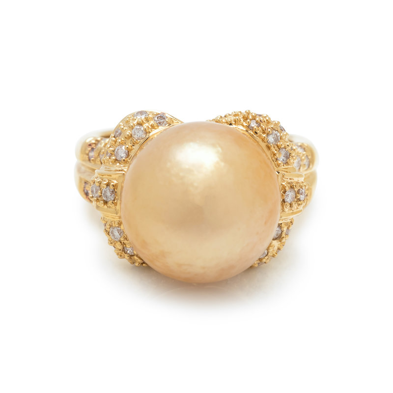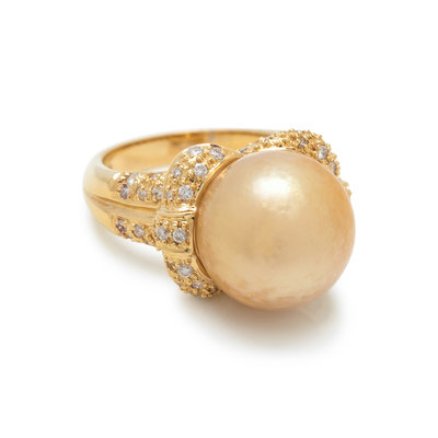 CULTURED GOLDEN SOUTH SEA PEARL AND DIAMOND RING