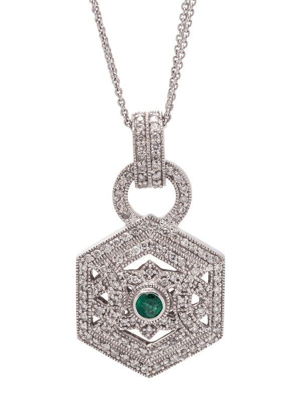 EMERALD AND DIAMOND PENDANT/NECKLACE