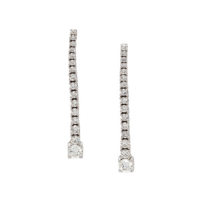 Containing 32 round brilliant cut diamonds weighing approximately 1.45 carats total. Mounted in white gold. 1 1/2 inches long.