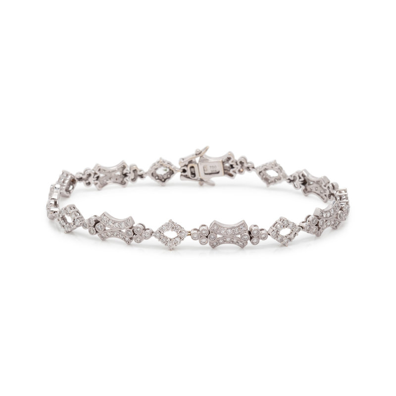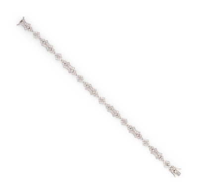 Containing 182 round brilliant cut diamonds weighing approximately 2.10 carats total. Mounted in white gold. 7 3/16 inches long.