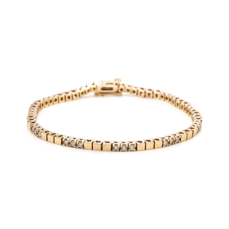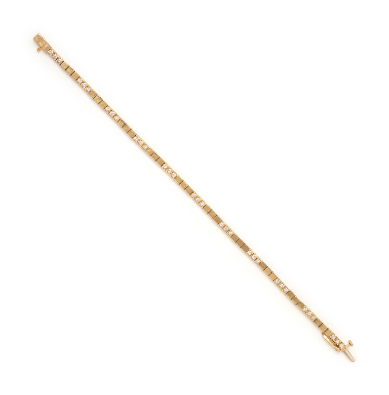 Containing 33 round brilliant cut diamonds weighing approximately 1.00 carat total. 7 1/2 inches long.