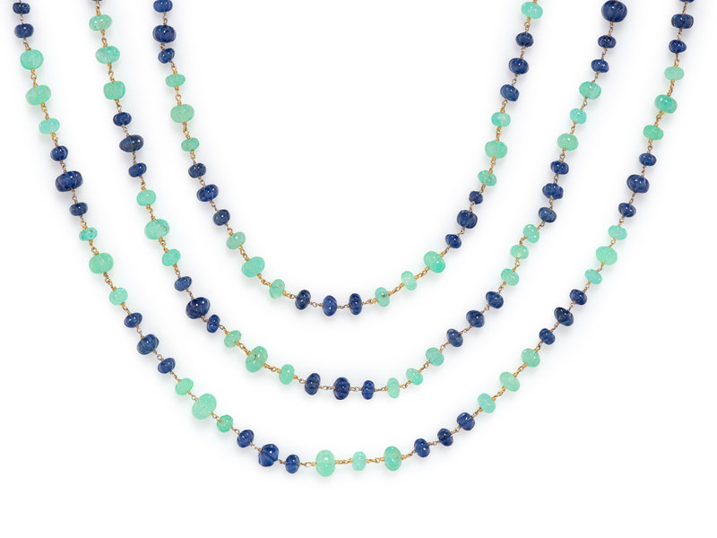 EMERALD AND SAPPHIRE CARVED BEAD NECKLACES