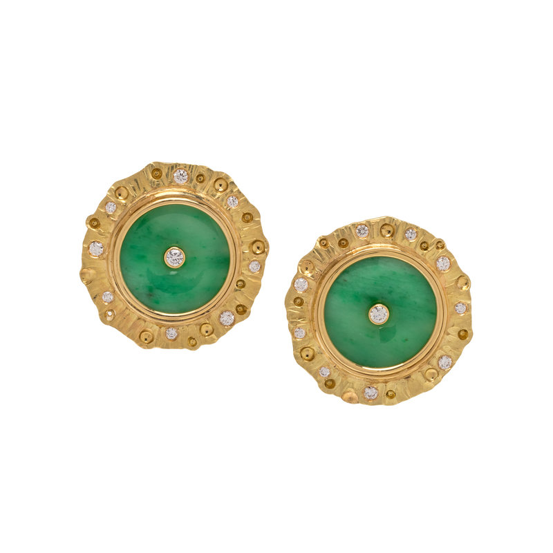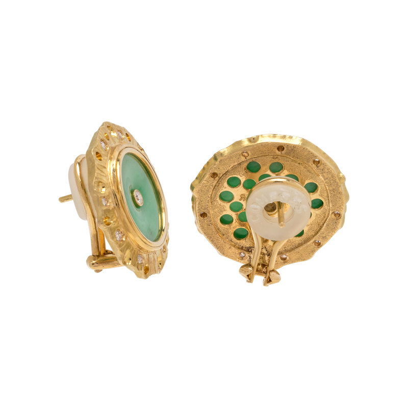 RICHARD KIMBALL, YELLOW GOLD, JADE AND DIAMOND EARCLIPS