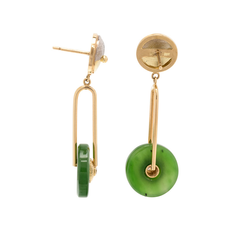 RICHARD KIMBALL, YELLOW GOLD, NEPHRITE AND DIAMOND EARRINGS
