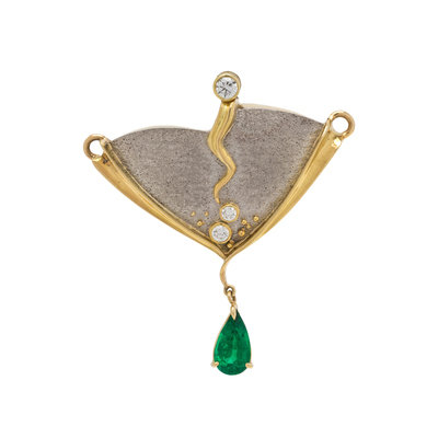 PALLADIUM, YELLOW GOLD, DIAMOND AND EMERALD PENDANT