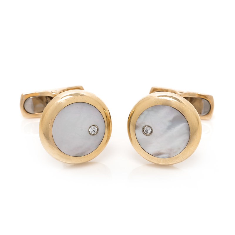 MOTHER-OF-PEARL AND DIAMOND CUFFLINKS
