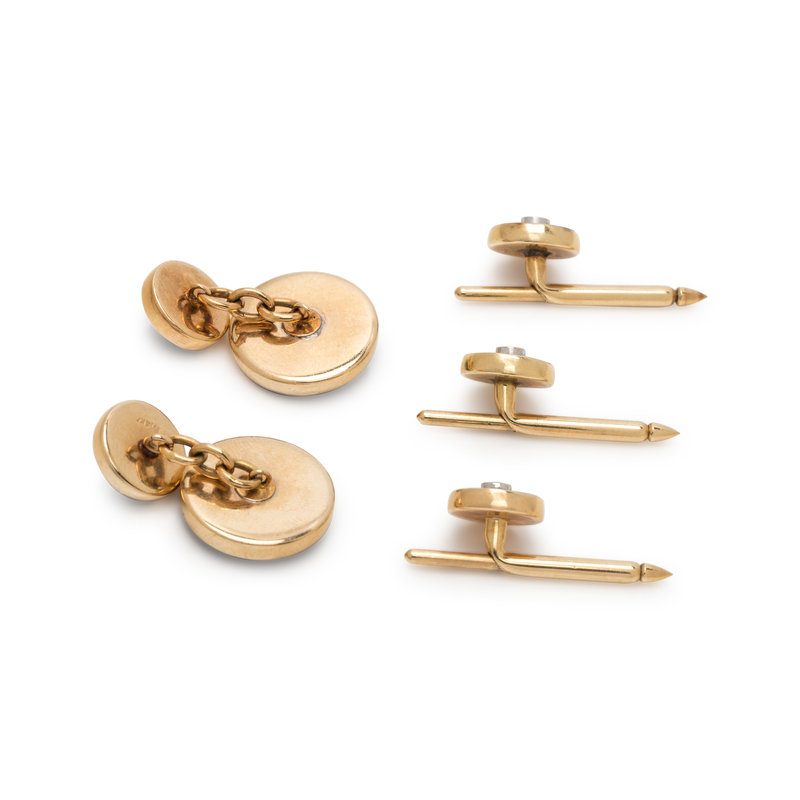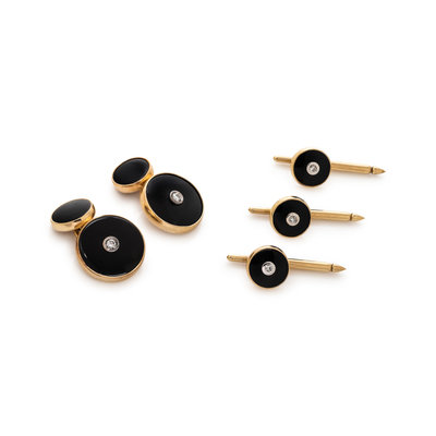 YELLOW GOLD, ONYX AND DIAMOND DRESS SET