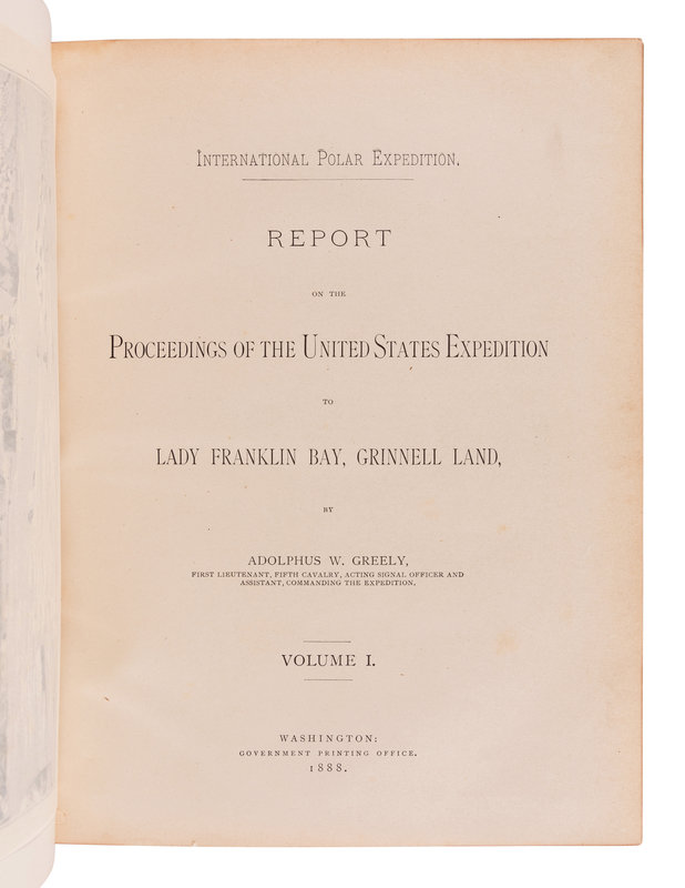 GREELY, Adolphus W. (1844-1935). Report of the Proceedings of the United States Expedition to Lady Franklin Bay, Grinnell Land. Washington: Government Printing Office, 1888.