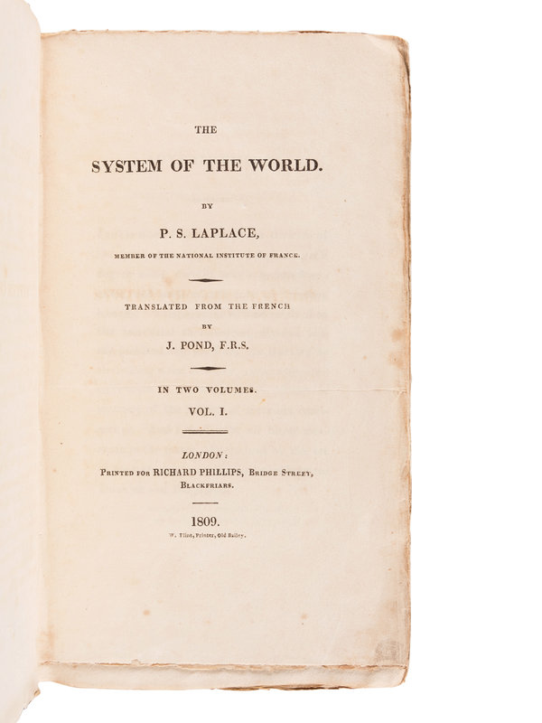 LAPLACE, Pierre Simon de, Marquis (1749-1827). The System of the World. 1809. $1,500.