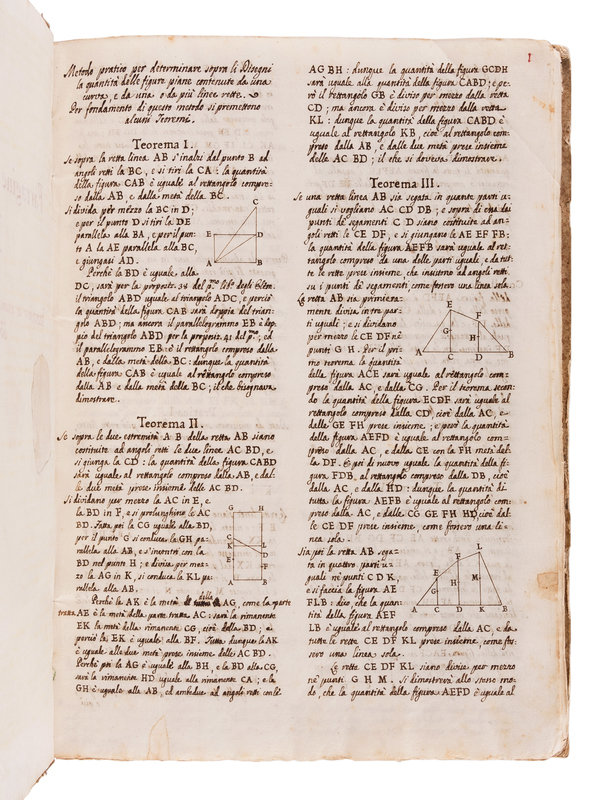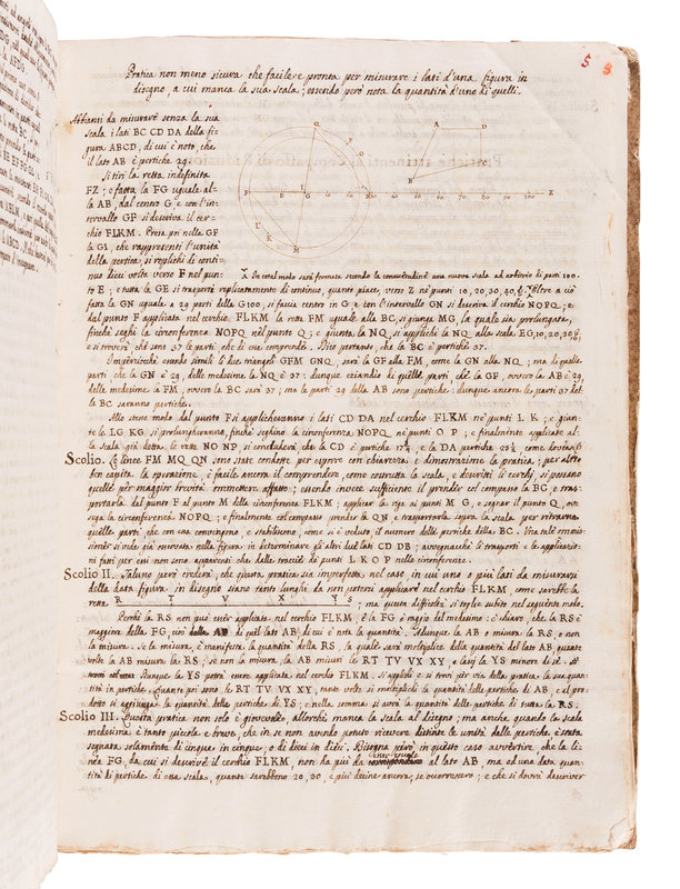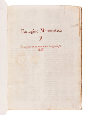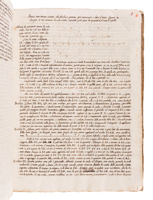 4to. 200pp. manuscript in Italian, in ink with diagrams and tables, title and page numbers lettered in red, errata slips in the same hand laid in. (Two tears with losses repaired to title-page not affecting text, lacking pp.75-76, presumably blank.) Contemporary quarter sheep uncut (some minor rubbing or soiling.)