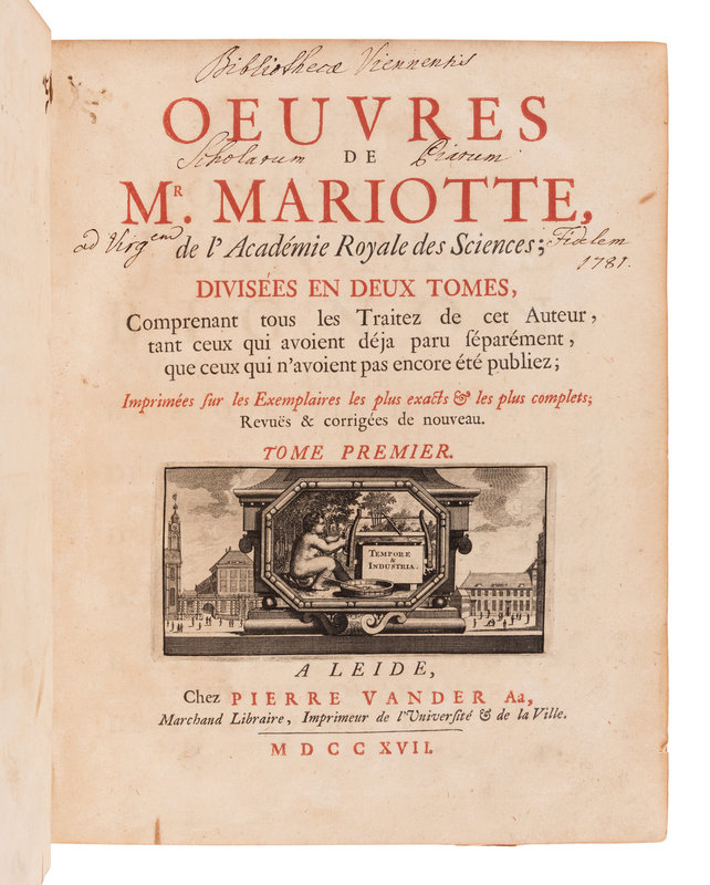 MARIOTTE, Edme (1620-1685). Oeuvres. Leiden: Pierre Vander Aa, 1717.