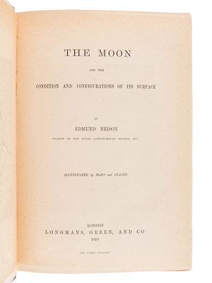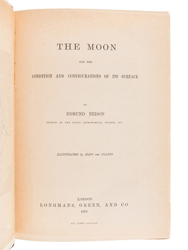 NEISON, Edmund (1849-1940). The Moon and the Condition and Configurations of its Surface. London: Longmans, Green, and Co., 1876.