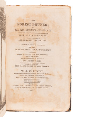 PONTEY, William (fl 1780-1831). The Forest Pruner; Or, Timber Owner’s Assistant: A Treatise on The Training or Management of British Timber Trees; ...with Remarks on the Old and Outlines of a New System of Management of Oak Woods. London: J. Harding, 1810.