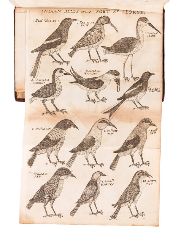 2 parts in one volume, 8vo (192 x 110 mm). Four engraved folding plates; publisher's advertisement leaf at end. (Some very slight chipping to edges of two plates, some minor offsetting or spotting.) Contemporary calf gilt (rebacked to style). Provenance: S. Dillon Ripley (1913-2001), ornithologist, eighth Secretary of the Smithsonian (bookplate).