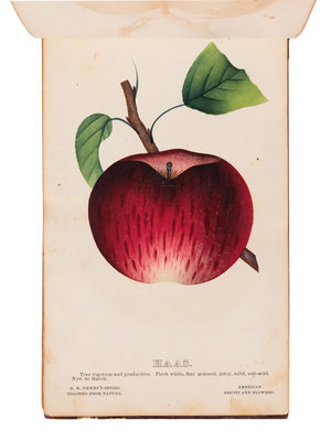 Dewey was the most successful of the nineteenth-century nurserymen from the Flower City. The plates his firm produced "were simple watercolours, but later, as demand grew, the technique of theorem paintings coloured with the help of stencils was used to multiply the number of copies as quickly and as cheaply as possible" (Oak Spring Pomona 64).