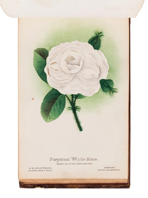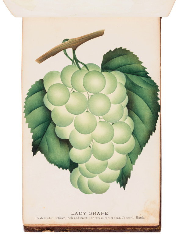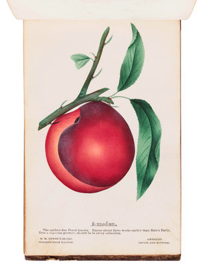 [SALESMAN'S CATALOGUE]. DEWEY, D.M. The Nurserymen's Pocket Specimen Book, Colored from Nature, Fruits, Flowers, Ornamental Trees, Shrubs, Roses, &c. A specimen book for John Dixon, Dixon Nurseries, Geneva, NY. Rochester, NY: Keeler & Winfield, 1876.