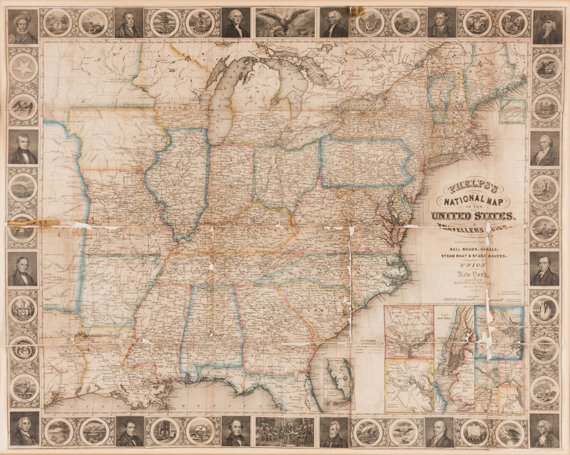 PHELPS, ENSIGNS & THAYER, publishers. Phelps's National Map of the United States, A Travellers Guide [map only]. New York, 1848.