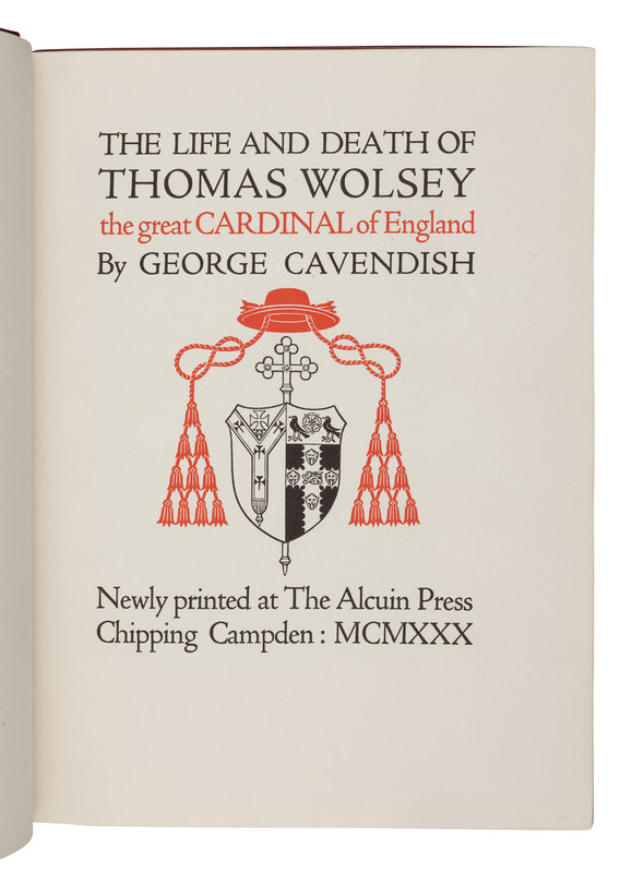 CAVENDISH, George (1500?-1562). The Life and Death of Cardinal Wolsey the Great Cardinal of England. Chipping Campden: Alcuin Press, 1930.