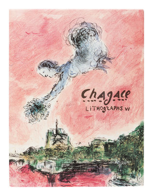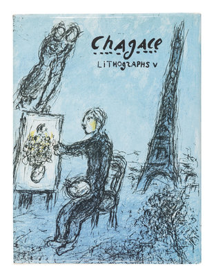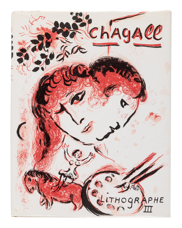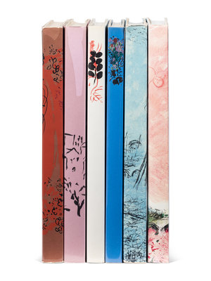 6 volumes, 4to. Text in English, German or French corresponding with place of publication, 28 original lithographs (including dust jackets and frontispieces), numerous reproductions of Chagall’s lithographs. Original publisher’s cloth; original lithographed dust jackets (chipping to a few volumes, slight rubbing to spine ends); original glassines (chipping); original board slipcases for vols. III-IV. Provenance: Randy Barcelo (1946-1994), Cuban artist (embossed stamp).