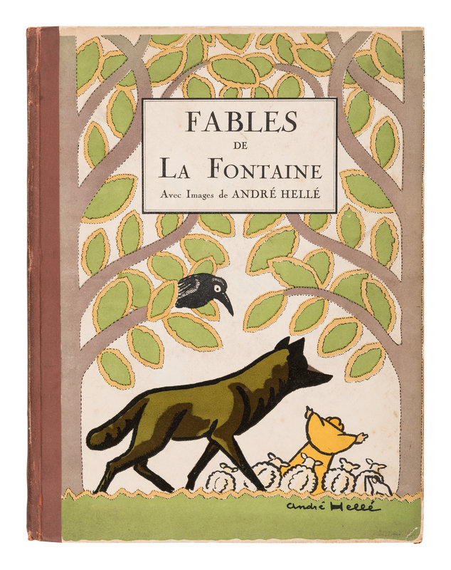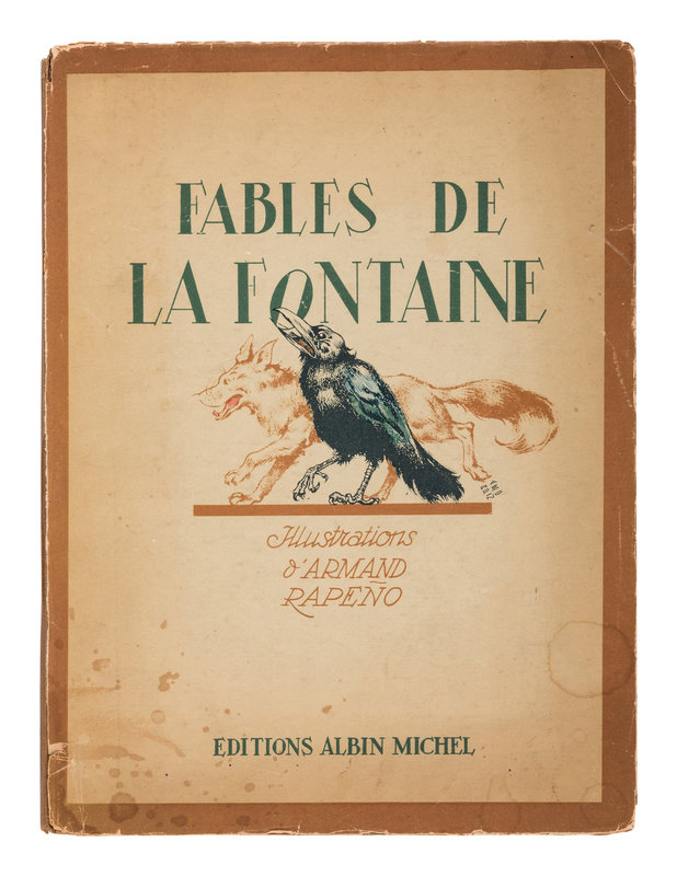 Fables de la Fontaine. N.p., n.d. (ca. 1920). Small Folio. Numerous color illustrations by Andre Helle. Original cloth-backed pictorial boards. -- Fables de la Fontaine. France: Editions Albin Michel, 1947. Large 8vo. Numerous illustrations by Armand Rapeno. Original paper-backed boards, original dust jacket. -- The Fables of La Fontaine. New York: The New Press, 1997. Square 8vo. Numerous illustrations by Marc Chagall (1887-1985). Original boards, pictorial slip case. Light chipping to extremities of spine and slipcase. -- And 7 others. Together 10 works in 10 volumes, various 4to and 8vo sizes, various editions, condition generally fine. Complete list available upon request.