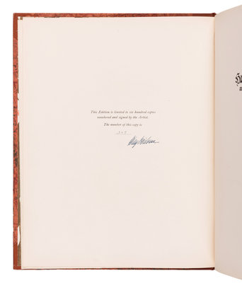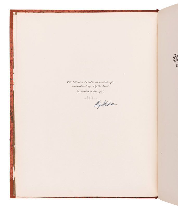 LIMITED EDITION, No. 319 of 600 copies SIGNED BY NIELSEN. Danish illustrator Nielsen moved to California in 1939 and contributed illustrations to Fantasia in one of his many collaborations with Disney over a 4-year period. Despite his talent, Nielsen did not have financial success. His last artworks were murals for local churches and schools around Los Angeles, most notably the “The First Spring” mural at Central Junior High School. With a pamphlet by Nielsen, “The First Spring Mural for Central Junior High School,” laid in.