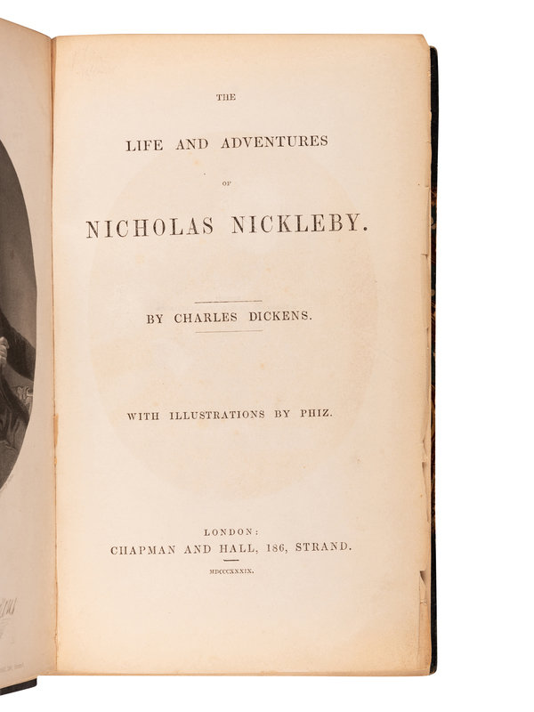 DICKENS, Charles (1812-1870). The Life and Adventures of Nicholas Nickleby. London: Chapman & Hall, 1839.
