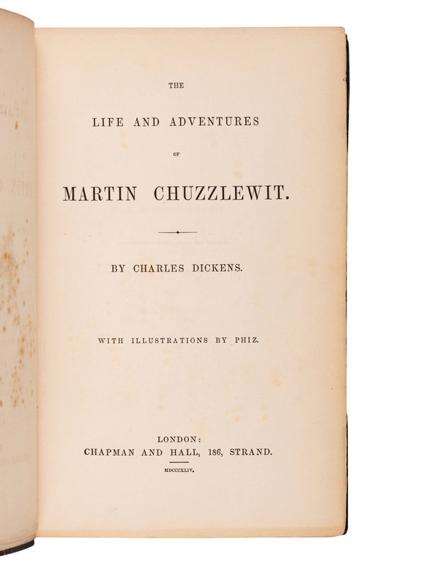 DICKENS, Charles (1812-1870). The Life and Adventures of Martin Chuzzlewit. London: Chapman & Hall, 1844.