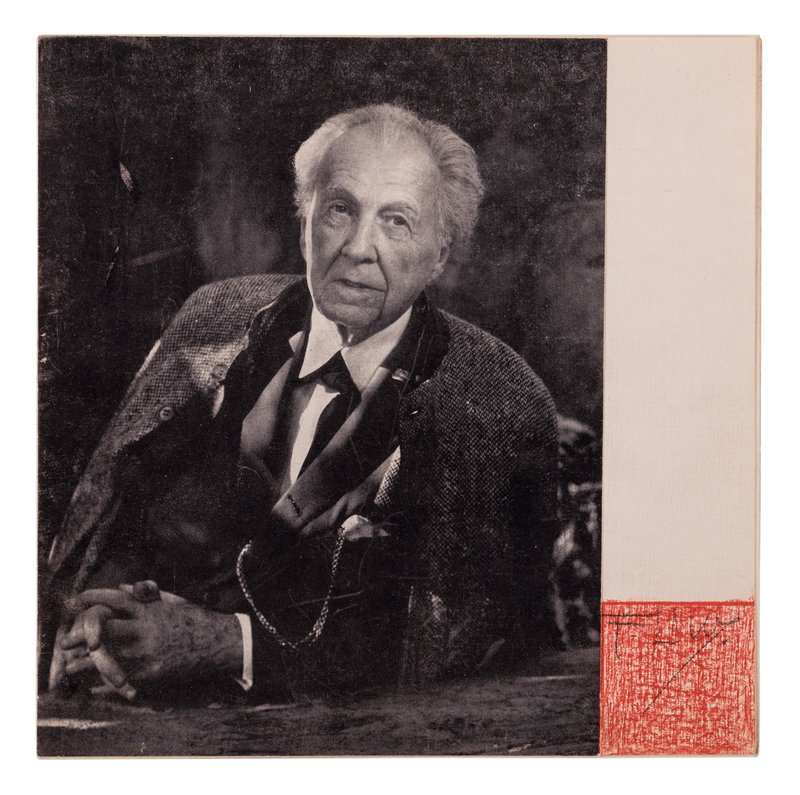 [FRANK LLOYD WRIGHT DAY]. Early working draft for an 8-page brochure for Frank Lloyd Wright Day with pencil annotations throughout. SIGNED BY WRIGHT ("FLLW") on cover. Mayor Richard Daley established Frank Lloyd Wright Day on 17 October 1956.