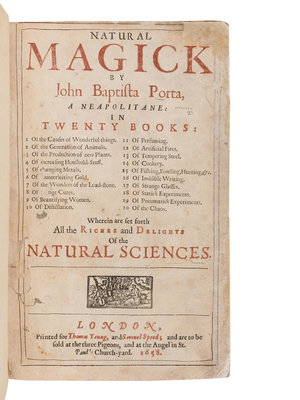 PORTA, Giambattista della (1535?-1615). Natural Magick...in twenty books. London: Thomas Young and Samuel Speed, 1658.