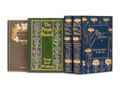 STIELER, Karl (1842-1885), Hans Wachenhusen (1823-1898), and Friedrich W. Hacklander (1816-1877). The Rhine, from its Source to the Sea. Philadelphia: John C. Winston Co., 1898. 2 volumes, 8vo. Original publisher’s blue decorated cloth. -- QUAYLE, William Alfred (1860-1925). King Cromwell. Cincinnati: Jennings & Pye, 1902 and New York: Eatom & Mains, 1902. 8vo. Original publisher’s decorated cloth. -- McCutcheon, George Barr (1866-1928). The Purple Parasol. New York: Dodd, Mead and Company, 1905. 8vo. Original publisher’s decorated green cloth. -- Together, 3 works in 4 volumes, condition generally fine.