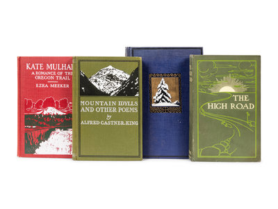 KING, Alfred Castner. Mountain Idylls and Other Poems. Chicago, New York, Toronto, London, and Edinburgh: Fleming H. Revell Company, 1901. 8vo. Original publisher’s decorated green cloth. -- The Highroad: Being an Autobiography or an Ambitious Mother. Chicago: Herbert S. Stone & Company, 1904. 8vo. Original publisher’s decorated green cloth. -- HEMON, Louis (1880-1924). Maria Chapdelaine: A Tale of the Lake St. John Country. New York: The Macmillan Company, 1924. 8vo. Drawings by Wilfred Jones. Original publishers decorated blue cloth. -- MEEKER, Ezra (1830-1928). Kate Mulhall: A Romance of the Oregon Trail. New York: Ezra Meeker, 1926. 8vo. Numerous illustrations. Original publisher’s decorated red cloth. -- Together, 4 works in 4 volumes, condition generally fine.