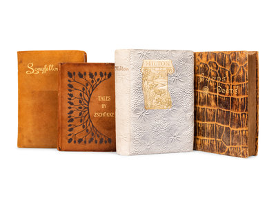 ZSCHOKKE, Heinrich (1771-1848). Tales by Heinrich Zschokke. New York and London: G.P. Putnam and Sons, n.d. 8vo. Original publisher’s faux-leather. -- BURNS, Robert (1759-1796). The Complete Works of Robert Burns. New York: Thomas Y. Crowell and Co., n.p.. 8vo. Original publisher’s faux-leather. -- MILTON, John (1608-1674). The Poetical Works of John Milton. New York: Thomas Y. Crowell and Co., 1892. 8vo. Original publisher’s faux-leather. -- LONGFELLOW, Henry Wadsworth (1807-1882). Poems of Henry Wadsworth Longfellow. New York: Thomas Y. Crowell and Co., 1903. 8vo. Original publisher’s cloth. -- Together, 4 works in 4 volumes, condition generally fine.