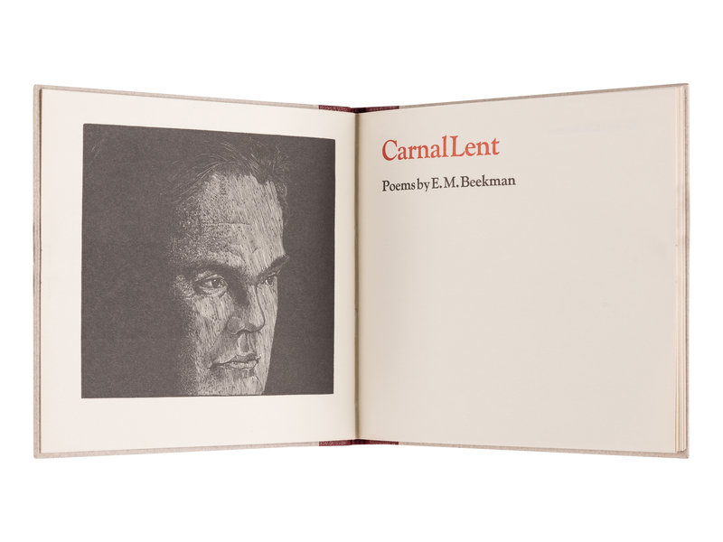 [MOSER, Barry, illustrator]. BEEKMAN, E. M. Carnal Lent. [Easthampton, MA]: Pennyroyal Press, 1975. Square 8vo. Wood engraved frontispiece portrait of Beekman by Barry Moser. Publisher’s quarter morocco over boards. LIMITED EDITION, one of 200 copies signed [MOSER, Barry, illustrator]. BEEKMAN, E. M. Carnal Lent. [Easthampton, MA]: Pennyroyal Press, 1975. —Totem. Poems. West Hatfield: Pennyroyal Press, 1984. BOTH LIMITED EDITION & SIGNED BY BOTH BEEKMAN AND MOSER. With 3 other titles.by Beekman and Moser, this copy out-of-series. Pennyroyal Checklist 11. — BEEKMAN, E. M. Totem. Poems. West Hatfield: Pennyroyal Press, 1984. 8vo. Illustrated with two wood engravings by Barry Moser. Original cloth, with printed spine label. LIMITED EDITION, number 98 of 100 copies, signed by both Beekman and Moser. One of two poetry collections by Beekman, who also translated the 17th Century naturalist Georgius E. Rumphius’ Ambonese Herbal, published by Yale in six volumes in 2011. Pennyroyal Checklist 31.