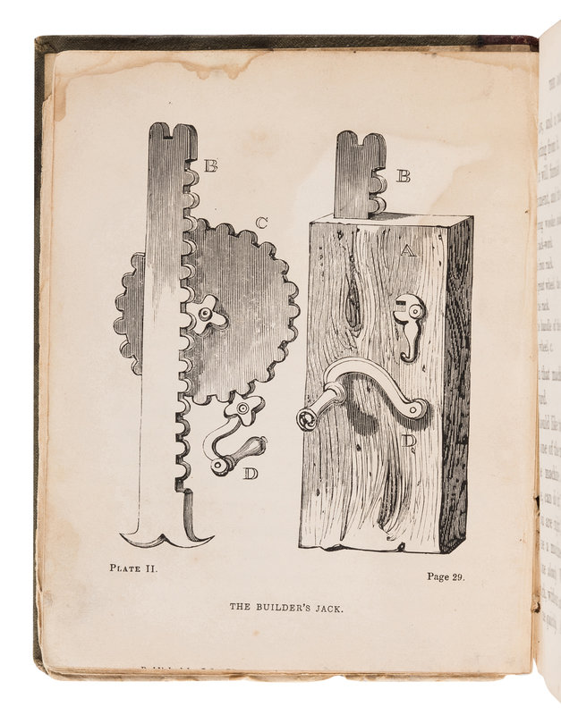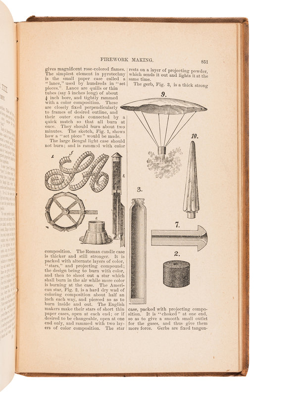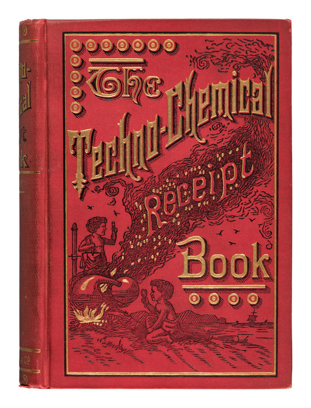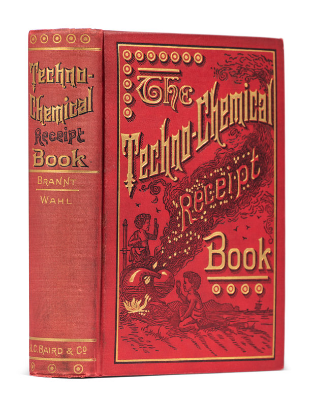 LEVER, Francis. Francis Lever, the Young Mechanic. London: John Harris, 1835. (132 x 108 mm). (Lacking most of quires A-B, some staining.) Original leather-backed cloth-covered boards (chipped, stained, text-block separating). RARE. -- SLOANE, Thomas O’Conor. Facts Worth Knowing Selected Mainly from The Scientific American for the Household, Workshop, and Farm. Hartford: S.S. Scranton & Co., 1890. (220 x 136 mm). (Some browning.) Contemporary sheep, morocco lettering-piece gilt (joints starting, rubbed). -- BRANNT, William T. and William H. WAHL (1848-1909), Editors . The Techno-Chemical Receipt Book: Containing Several Thousand Receipts, Covering the Latest, Most Important and Most Useful Discoveries in Chemical Technology, and their Practical Application in the Arts and the Industries. Philadelphia and London: Henry Carey Baird & Co. and Sampson Low, 1896. Printed table laid-in. Original publisher’s decorated red cloth (some minor soiling). Later edition. -- Together, 3 works in 3 volumes, all 8vo, engraved plates, all FIRST EDITIONS except where indicated.