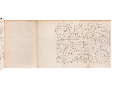 3 works in one volume, 4to (202 x 151 mm). 29 folding engraved plates. (Without the leaf with glossary of mathematical symbols inserted before A3, often lacking; some browning or offsetting, a few short tears to folds of plates). Contemporary mottled calf (neatly rebacked preserving old lettering-piece). Provenance: unidentified bookplate verso of title-page partially removed.