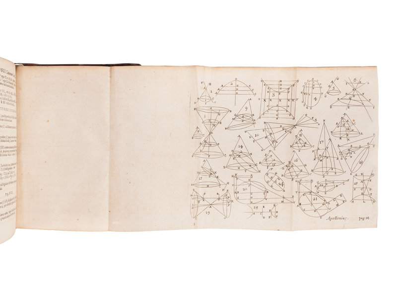 ARCHIMEDES (287?-212 B.C.), APOLLONIUS PERGAEUS (fl. 225 B. C.), and THEODOSIUS. Archimedis Opera --Apollonii Pergaei Conicorum libri IIII --Theodosii Sphaerica: methodo nova Illustrata, & Succinctae Demonstrata. London: William Godbid for Robert Scott, 1675.