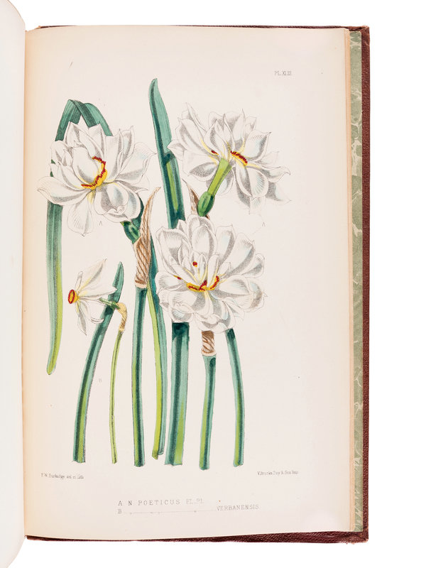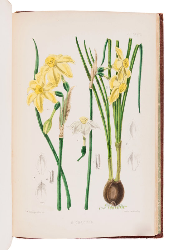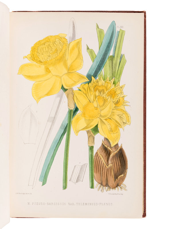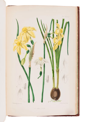 FIRST EDITION of Burbidge's study on the genus Narcissus. "In offering this short history of a popular genus of hardy bulbs, my object has been to assist horticulturists and amateurs by adding coloured figures to the excellent review of the genus which originally appeared in the 'Gardener's Chronicle' (1869)'" (Preface, p.[vii]). Nissen BBI 297; Great Flower Books p.83.