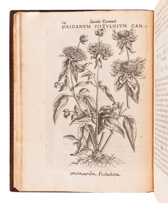 FRIST EDITION OF THE FIRST CANADIAN FLORA, describing and illustrating approximately thirty Northeast American species for the first time. French physician Cornut never visited North America, but received plant specimens from the Robins family, who supervised the gardens of Henry IV and the garden of the Paris Faculty of Medicine, and the Morin family, who owned several Parisian commercial nurseries. Cornut also includes five South African bulb plants, again illustrated here for the first time. Cleveland Collections 190; Hunt 227; Nissen BBI 406.