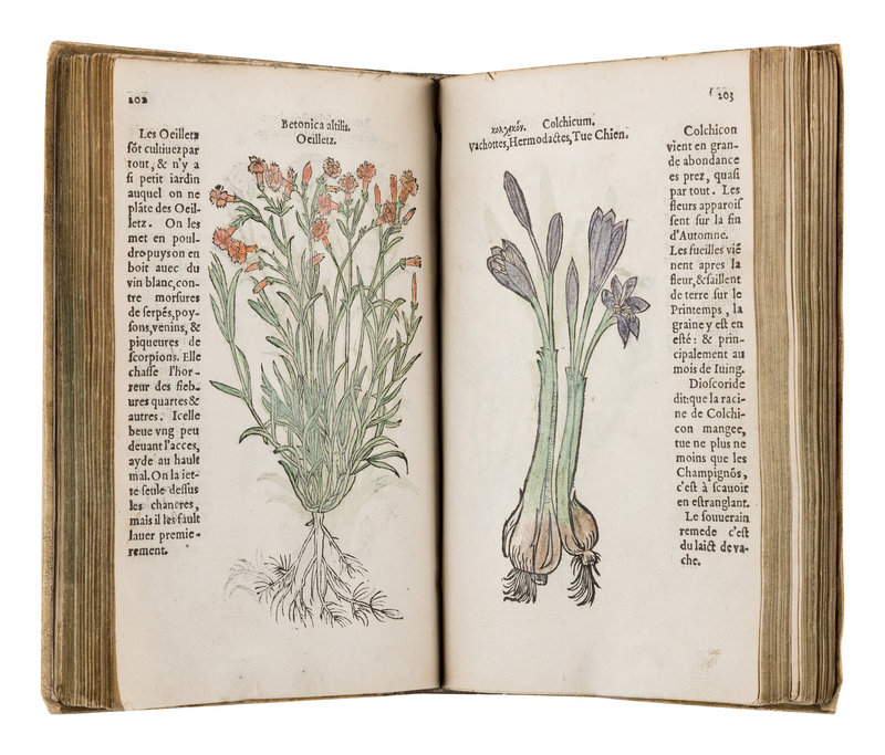 FUCHS, Leonhart (1501-1566). Histoire des Plantes de M. Leonhart Fuschsius, avec les noms Grecs, Latins & Fraçoys. Paris: Arnold Byrkman, 1549.
