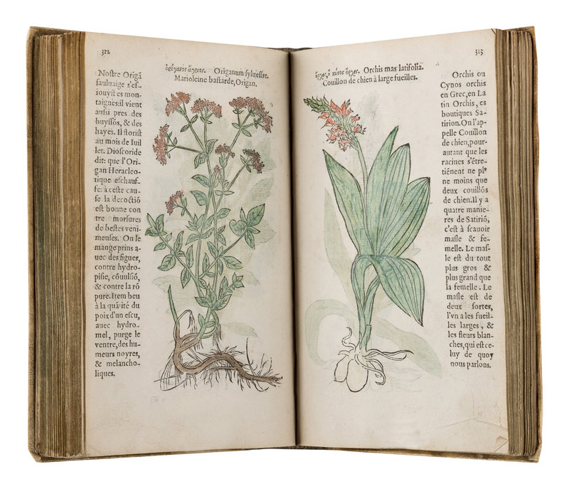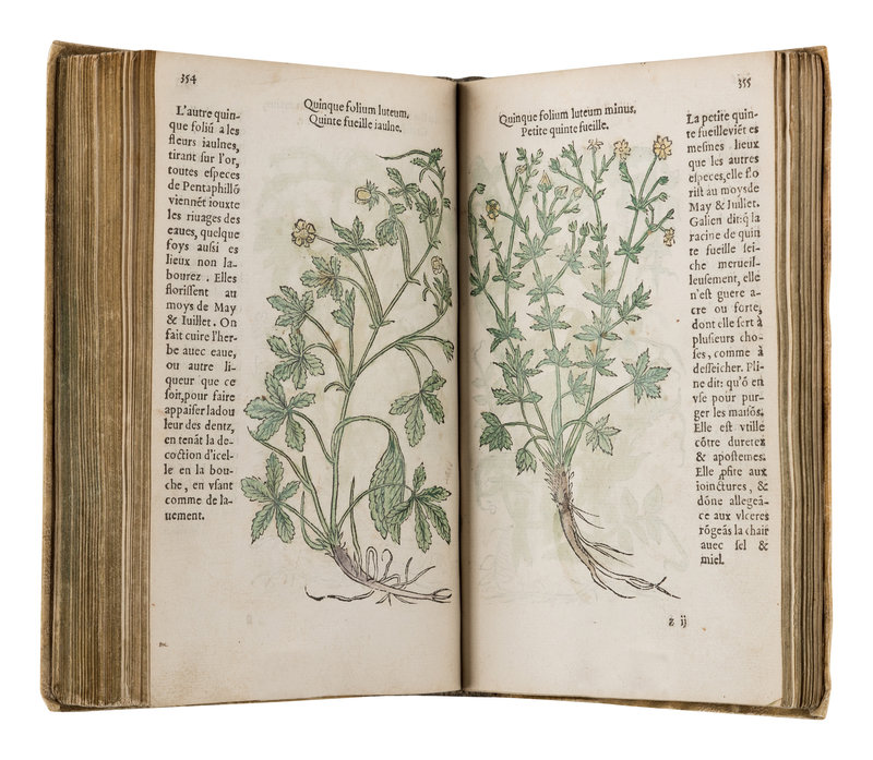 Presumed second edition in French. Nissen records two Paris editions of 1549: a folio edition published by Jacques Gazeau, and the present edition. Fuchs' work, "perhaps the most celebrated and most beautiful herbal ever published" (PMM), was first published in Latin as De Historia Stirpium Commentarii Insignes in Basel in 1542. The popularity of Fuchs' work in France is evidenced by the numerous editions which appeared in quick succession from 1549 through 1558.