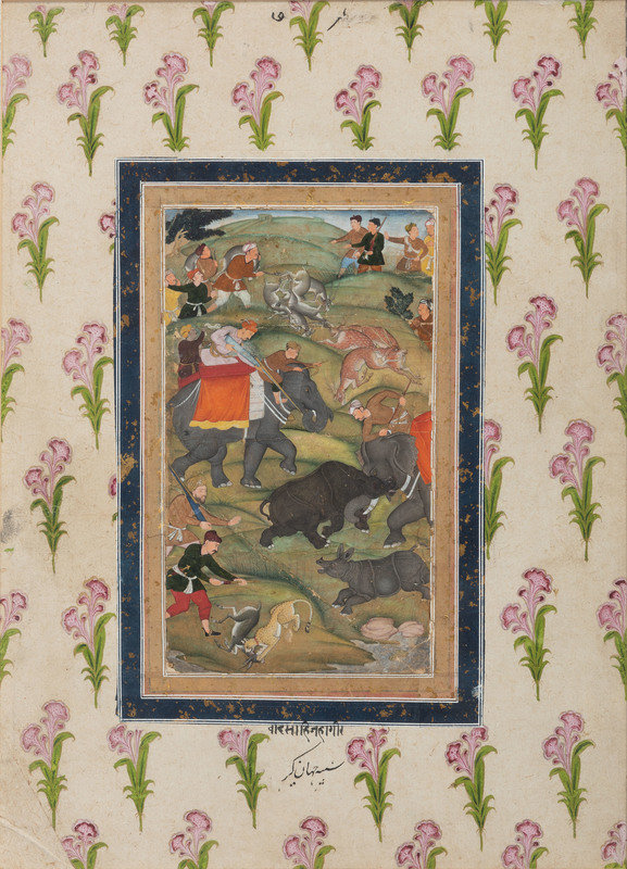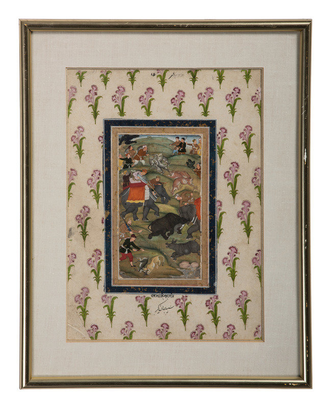 Sight of hunt scene with mat 14 1/4 x 10 1/4 inches.