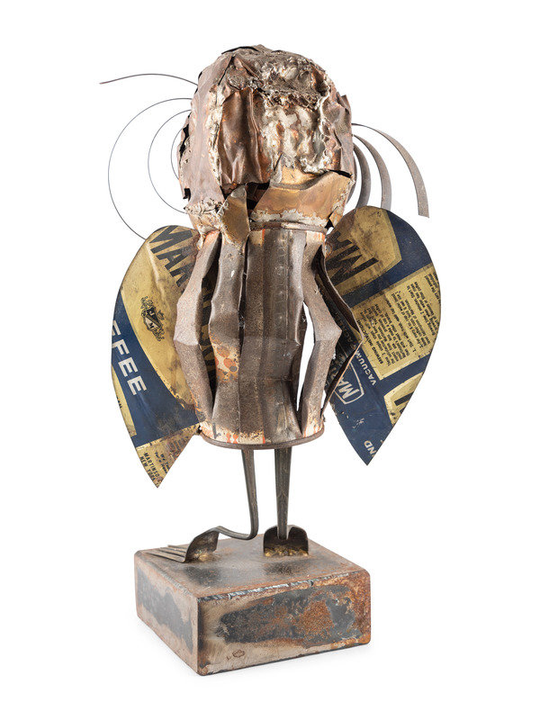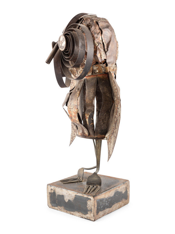repurposed metalware including forks, spoons, a winding key, and a tin can
