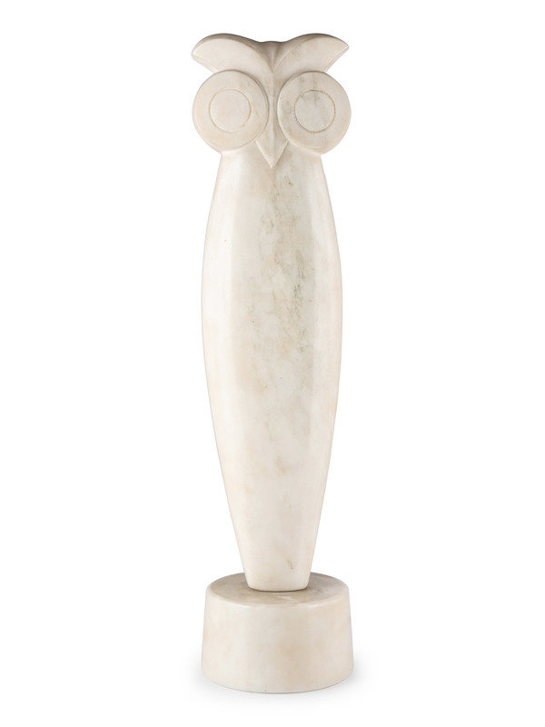 A White Marble Owl Sculpture