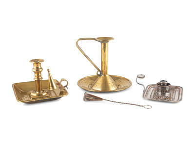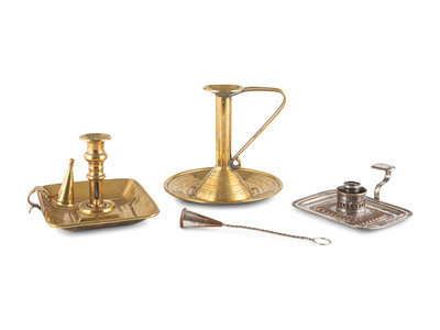 Three English Chambersticks, Brass and Silverplate