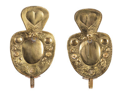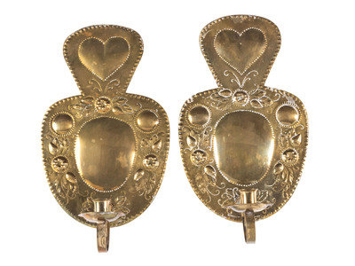 A Pair of Dutch Pressed Brass Heart-and-Berries One-Light Wall Sconces